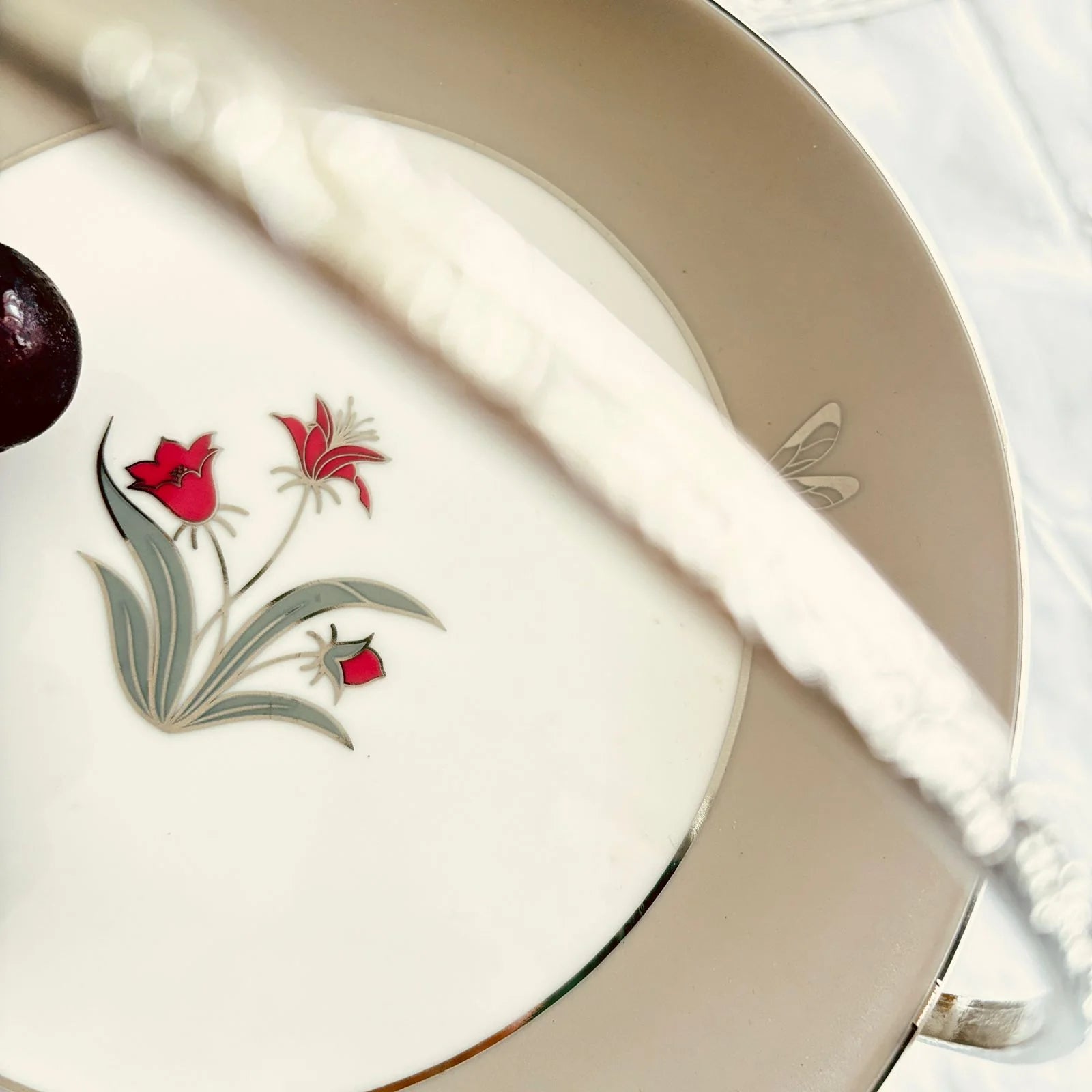 A testament to timeless English refinement, Gulzaar is a two-tier platter that embodies grace in every detail. Crafted from the finest porcelain, its center reveals a delicate lily motif that seems to bloom from within. Subtle platinum accents trace its edges, while a soft, solid-hued rim lends an air of quiet sophistication.