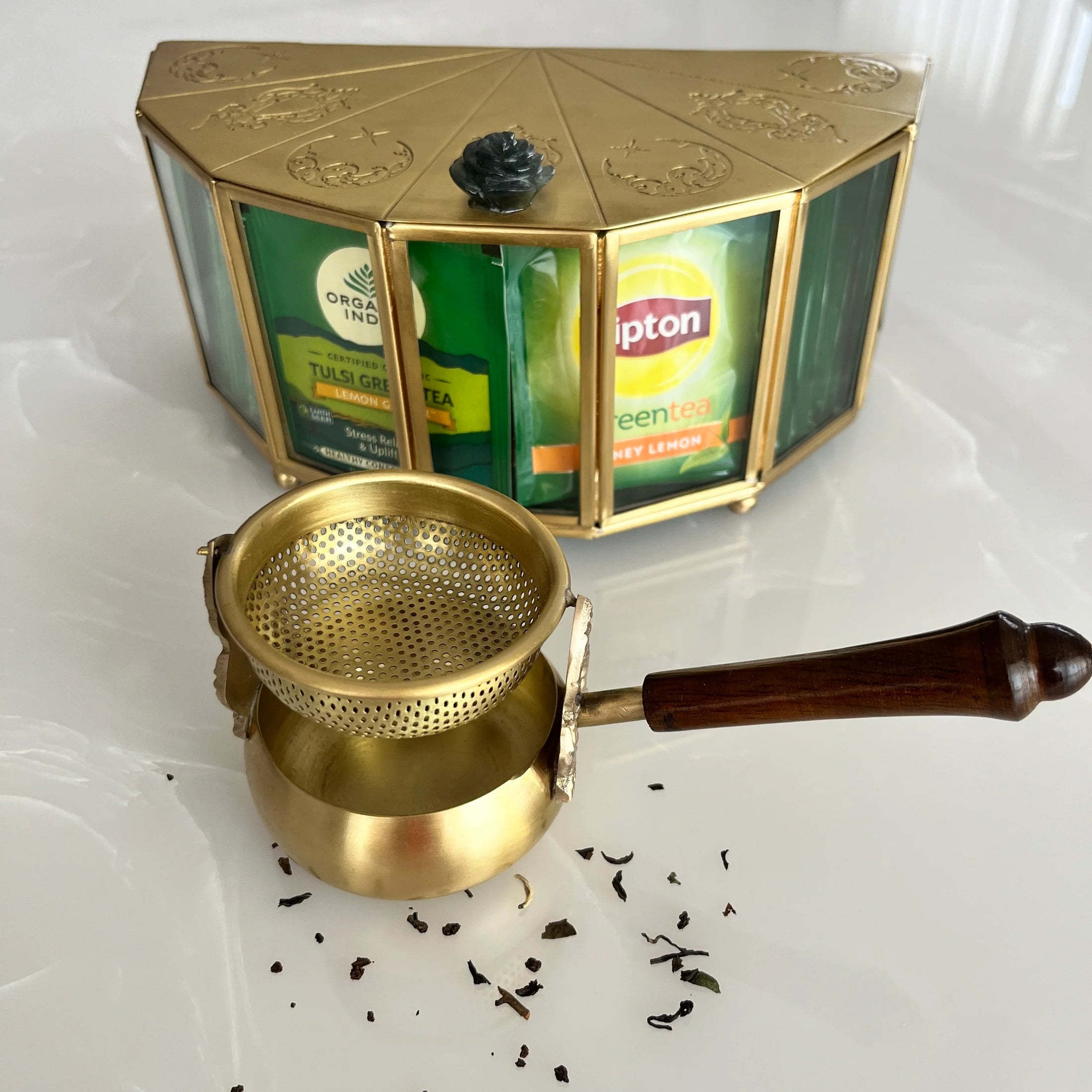 Refine your tea ritual with heritage charm. Crafted by skilled artisans using traditional methods, the Khubi Premium Brass Tea Strainer is more than just a kitchen tool — it’s a timeless blend of functionality and artistry. Designed to filter loose leaf blends with precision, Khubi adds a golden touch to your everyday tea moments.